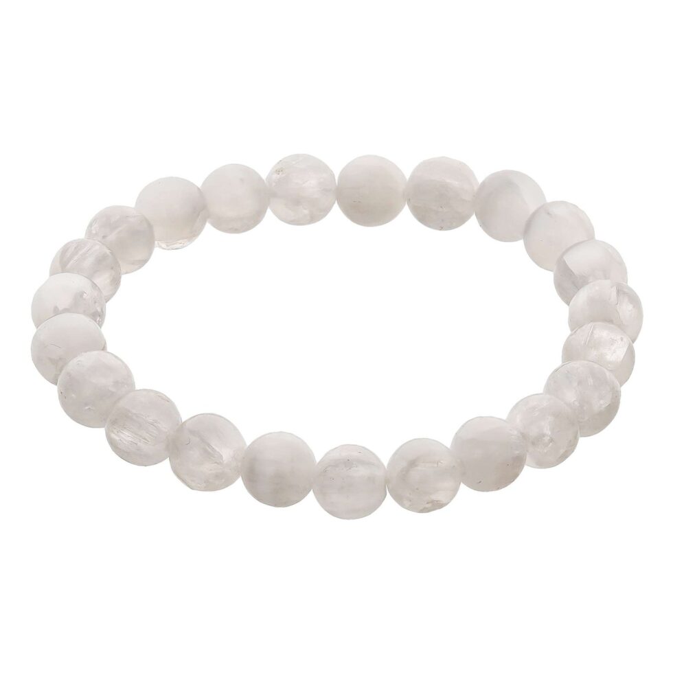 Selenite Crystal Bead Bracelet ? Healing Crystal Bracelet for Women and Men’s Gifts ? 8mm Round Beaded Stretchy Healing and Protection Gemstone Bracelet